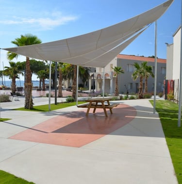 Le Camping Beau Rivage est un site 4 étoiles situé face à l’étang de Thau. Il offre un cadre agréable et convivial avec un joli parc aquatique avec un bain à remous, des terrains multisports, des tables de ping-pong et un terrain de pétanque, parfait pour se détendre après les cours et profiter pleinement du week-end.