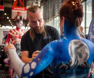 Nous offrons également la possibilité de réaliser des sessions de bodypainting en coulisses, afin que les modèles soient entièrement prêts avant l’arrivée du public. Idéal pour des spectacles, shows, défilés ou événements, cette option garantit un effet "waouh" dès le début.