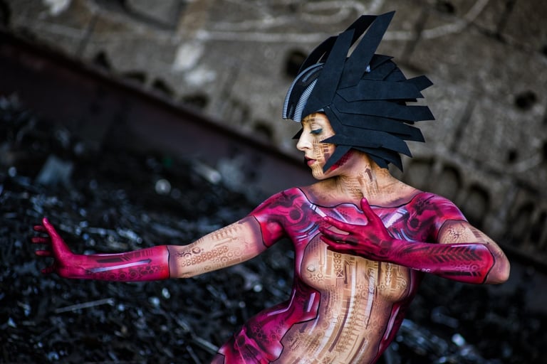 Nous collaborons également avec des photographes, des agences et des organisateurs de spectacles pour créer des Bodypaintings adaptés aux productions visuelles. Qu’il s’agisse de transformations, de personnages stylisés ou d'effets scéniques, nos créations s’intègrent parfaitement dans les projets artistiques les plus ambitieux.