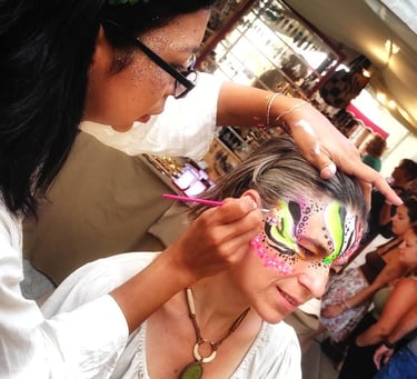 Plongez vos invités au cœur de l’ambiance unique de votre événement grâce au face painting. Pour les fêtes de fin d’année, les carnavals, les festivals, les fêtes de villages, ou toute autre occasion spéciale, nous créons des maquillages en accord avec votre thème.