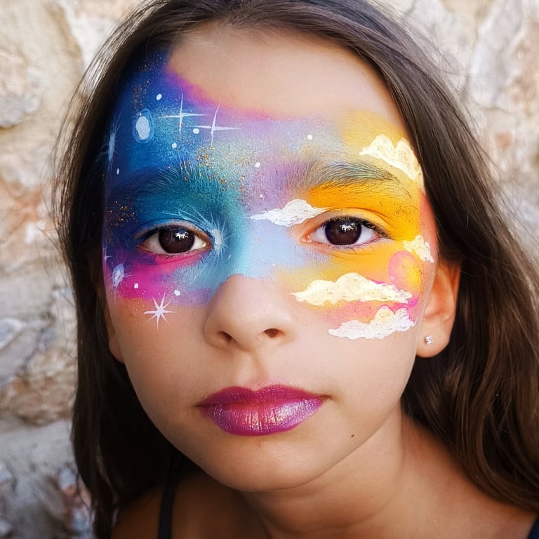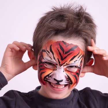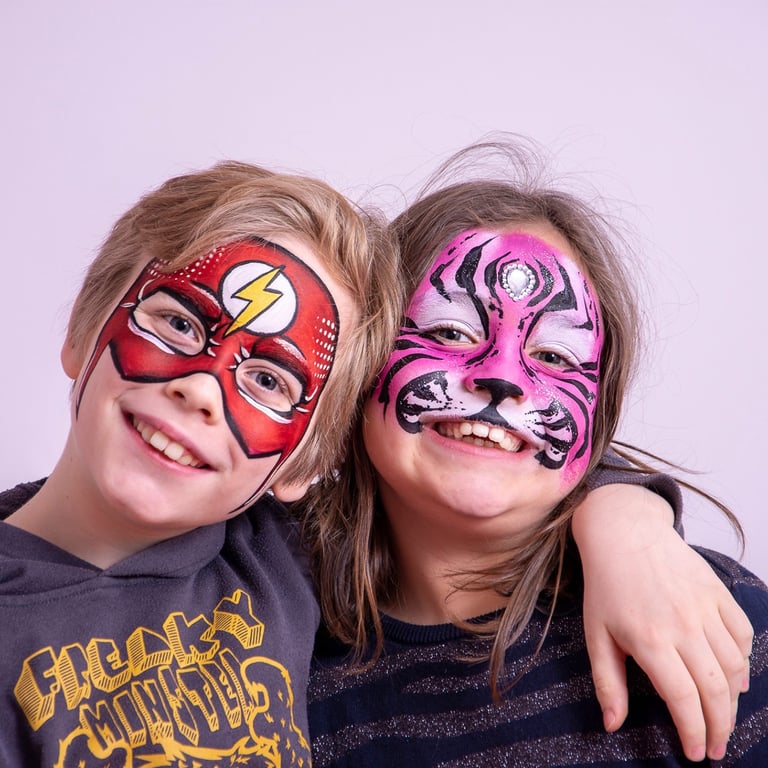Nous utilisons exclusivement des produits professionnels, hypoallergéniques et spécialement conçus pour le face painting, assurant une sécurité, durabilité et un confort optimal pour la peau.