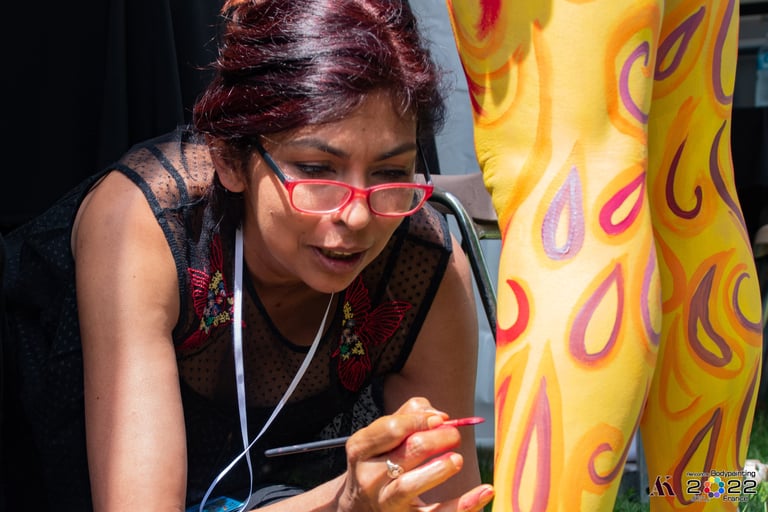 La découverte du Body painting il y a quelques années est une véritable révélation, en fusionnant ses différentes expressions artistiques elle y trouve une liberté d'expression infinie.