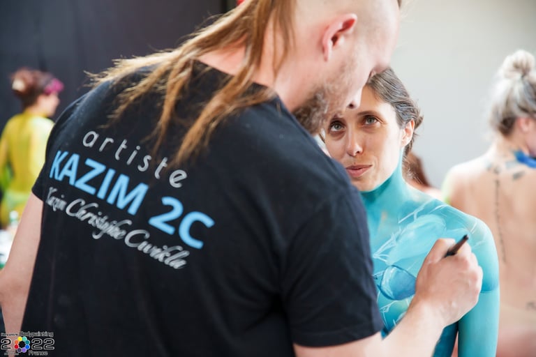 Kazim 2C est un artiste franco-polonais reconnu dans le domaine du bodypainting, une passion qui commence lorsqu'il est graffeur dans son pays d'origine. Installé à Épinal en France, il fonde l'association Les Pygmalions, regroupant des artistes de bodypainting et de maquillage.